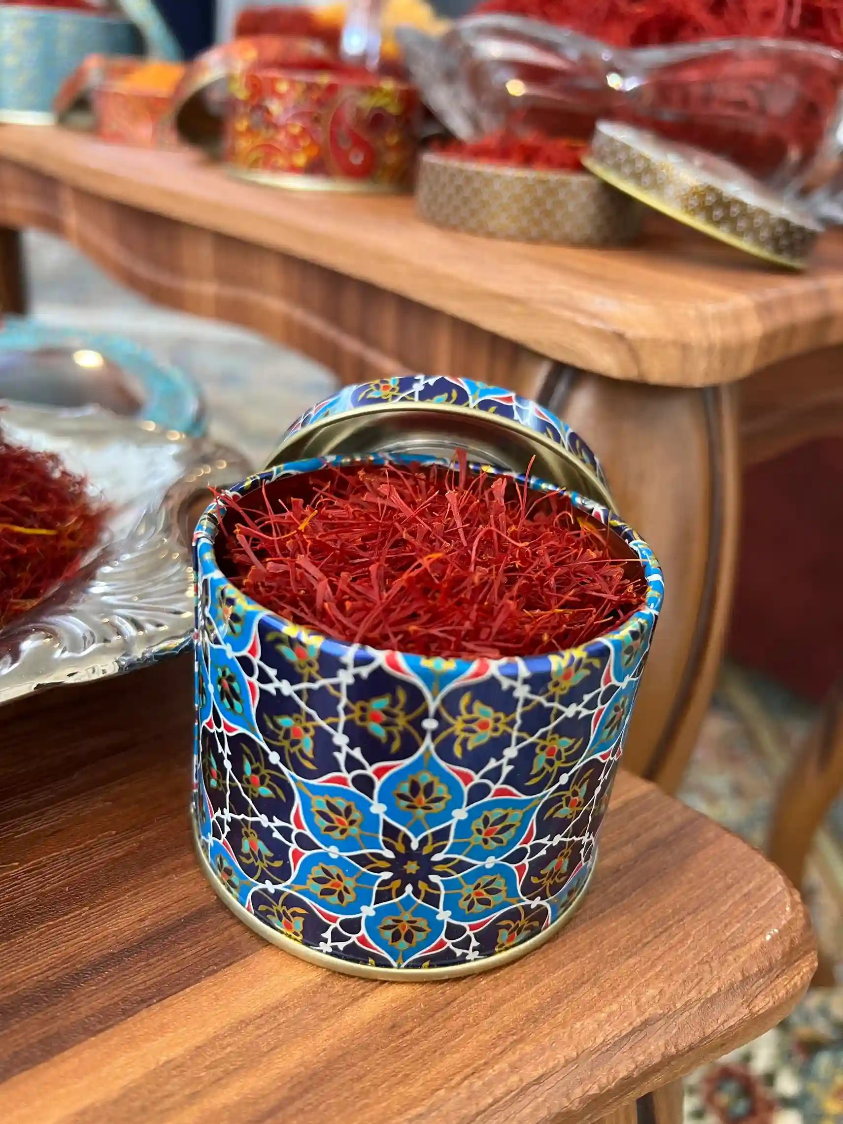 زعفران سوپرنگین صادراتی یک مثقالی با ظرف خاتم، تازه و با عطر طبیعی، برای غذا، دسر و نوشیدنی مناسب است.